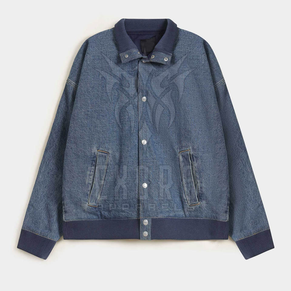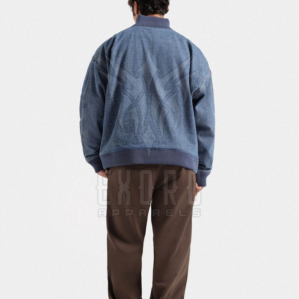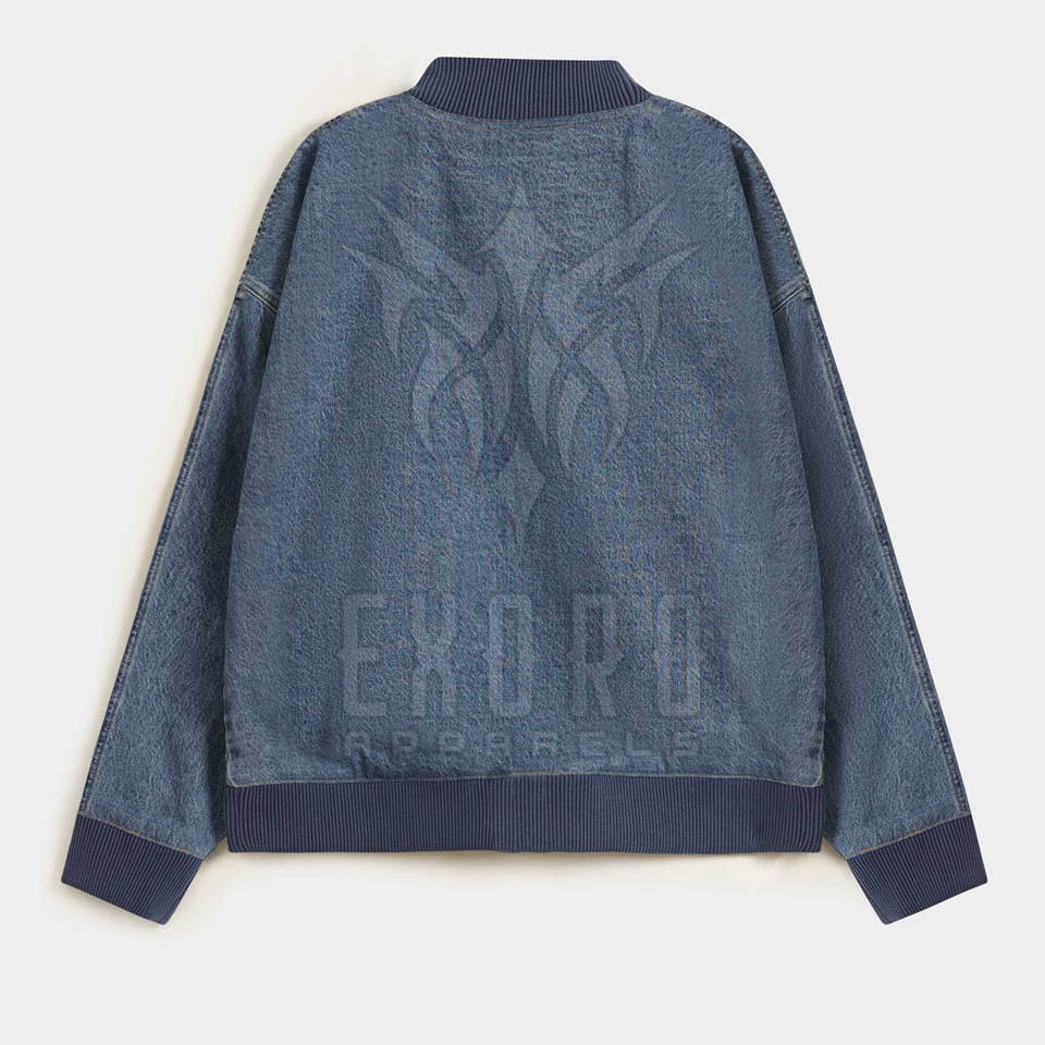 ราคาขายส่ง เสื้อแจ็คเก็ตยีนส์บอมเบอร์ผู้ชายคุณภาพสูง คอตั้ง น้ำหนักเบา ระบายอากาศได้ดี เป็นมิตรกับสิ่งแวดล้อม ปรับแต่งได้ ผลิตจากผ้าฝ้าย 100%
