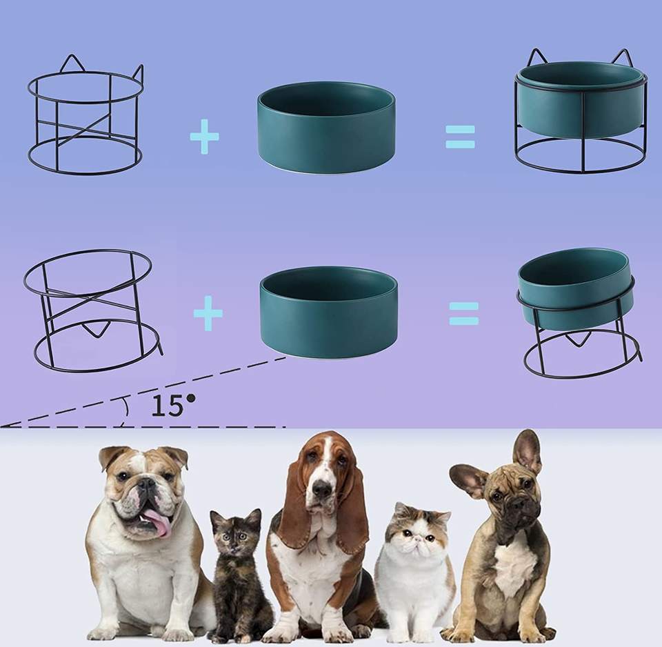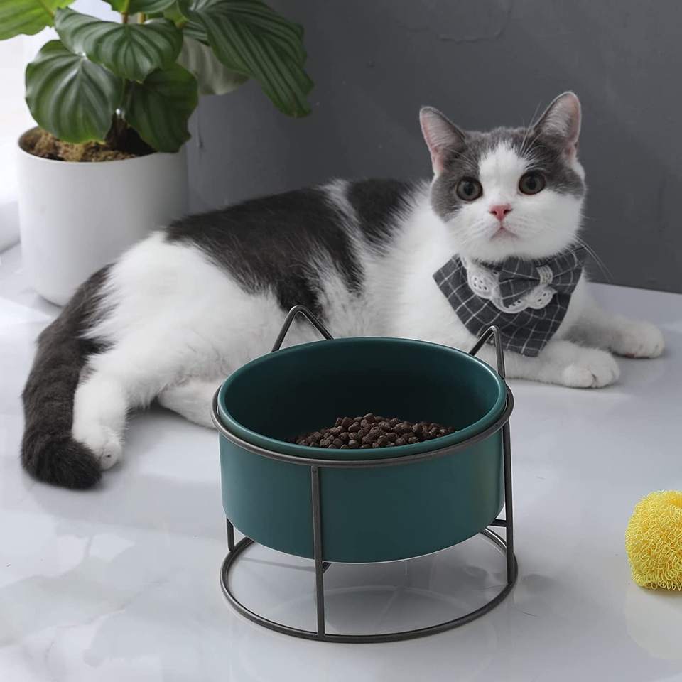 ชามอาหารแมวทำจากพอร์ซเลนดีไซน์สำหรับสุนัขตัวเล็กชามอาหารแมวแบบเอียงกว้างทำจากโลหะ