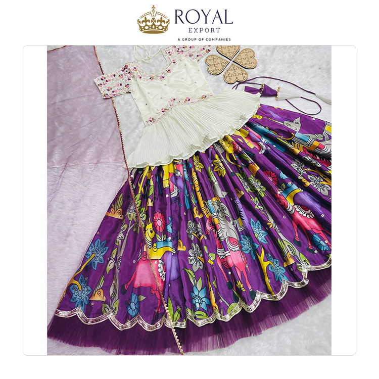 โชลีอินเดียกับโคติสำหรับเด็กผู้หญิงเสื้อผ้าอินเดียแบบหนาผ้าชินน่อนแบบมีตาข่าย