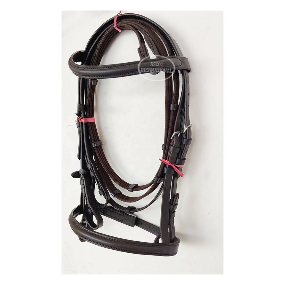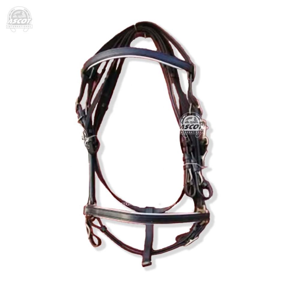 หัวเข็มขัดบังเหียนสำหรับแข่งม้าทำจากหนังแท้พร้อมสายรั้งที่เข้าคู่กัน