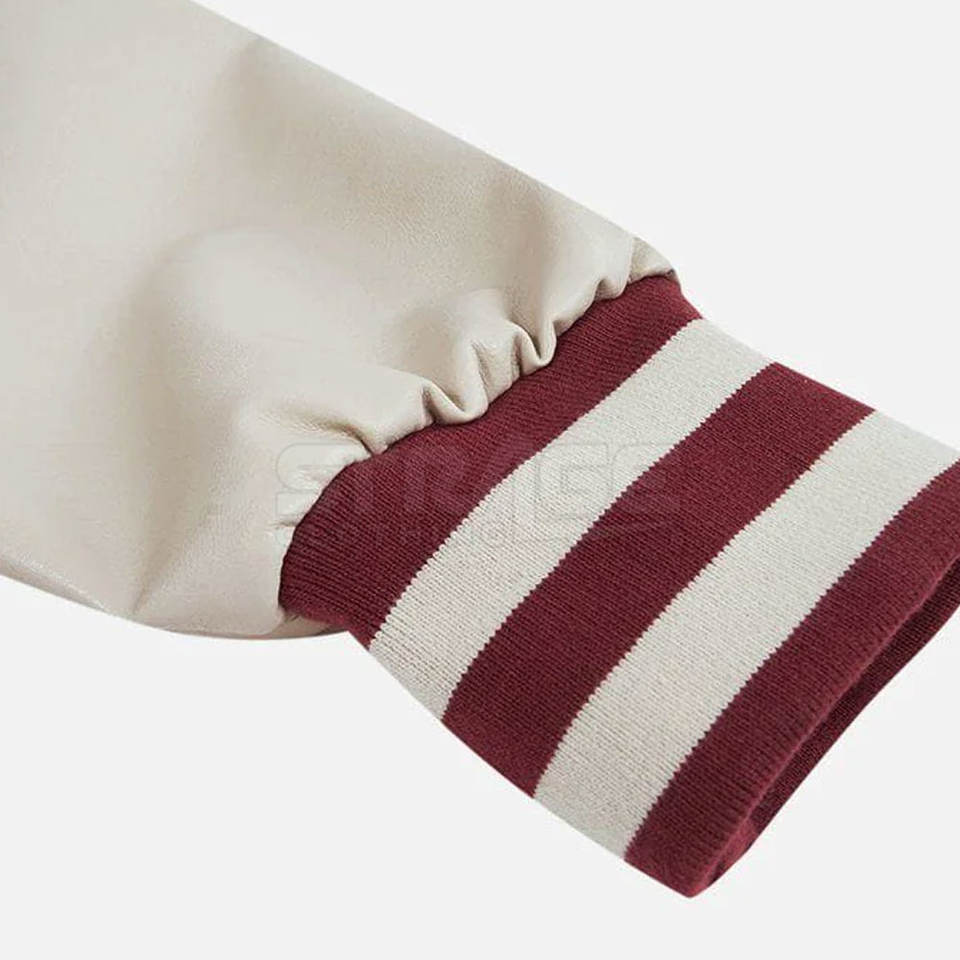Wholesale Price Hot Sale Leather & Wool Varsity Winter Jacket with Stand Collar Front Logo Customizable Design Eco-Friendly