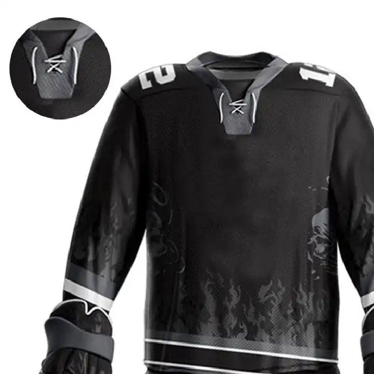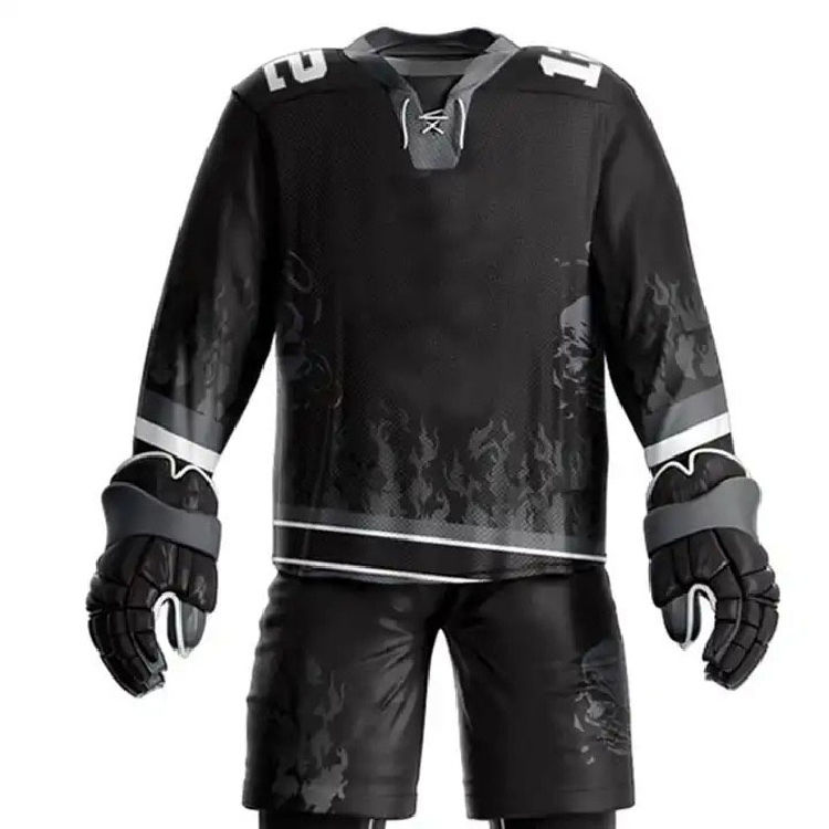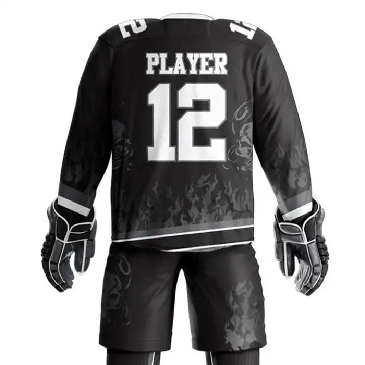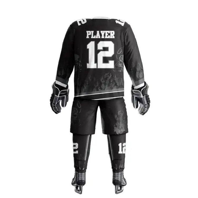 ชุดยูนิฟอร์มฮอกกี้น้ำแข็งขายส่ง คุณภาพสูง โลโก้ทีมแบบกำหนดเอง ชุดกีฬาแบบระบายอากาศได้ดี สีผ้าแบบกำหนดเอง บริการ OEM