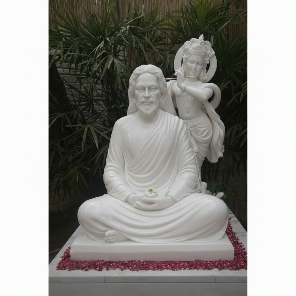 รูปปั้นพระเยซูคริสต์ คฤหัศจรรย์ โยคะ ศักดิ์สิทธิ์ ทำจากหินอ่อนสีขาว งานฝีมือ ขัดเงาด้วยมือแบบดั้งเดิมของอินเดีย สำหรับตกแต่งภายในสวนหรือวัด
