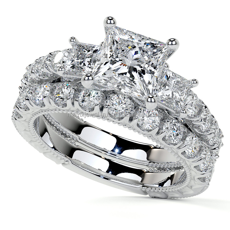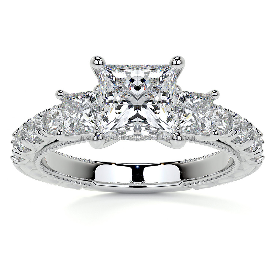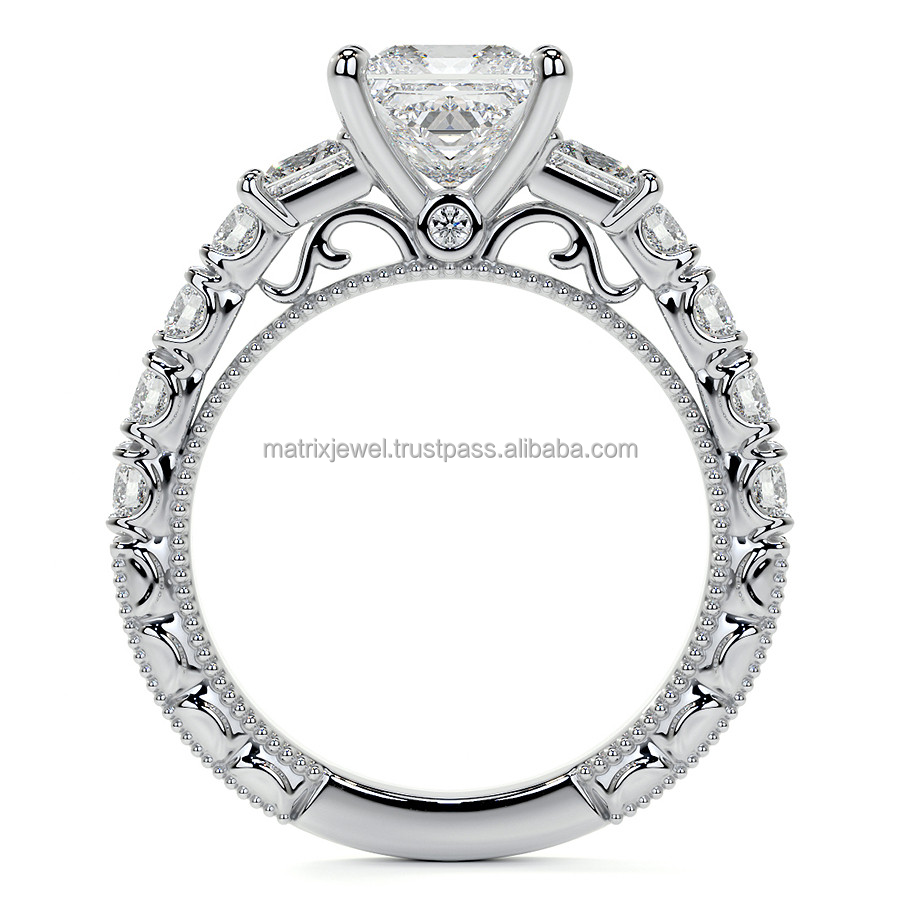 แหวนหมั้นเพชรโมอิสแบบตัดรูปเจ้าหญิงอินฟินิตี้ดีไซน์กำหนดเอง