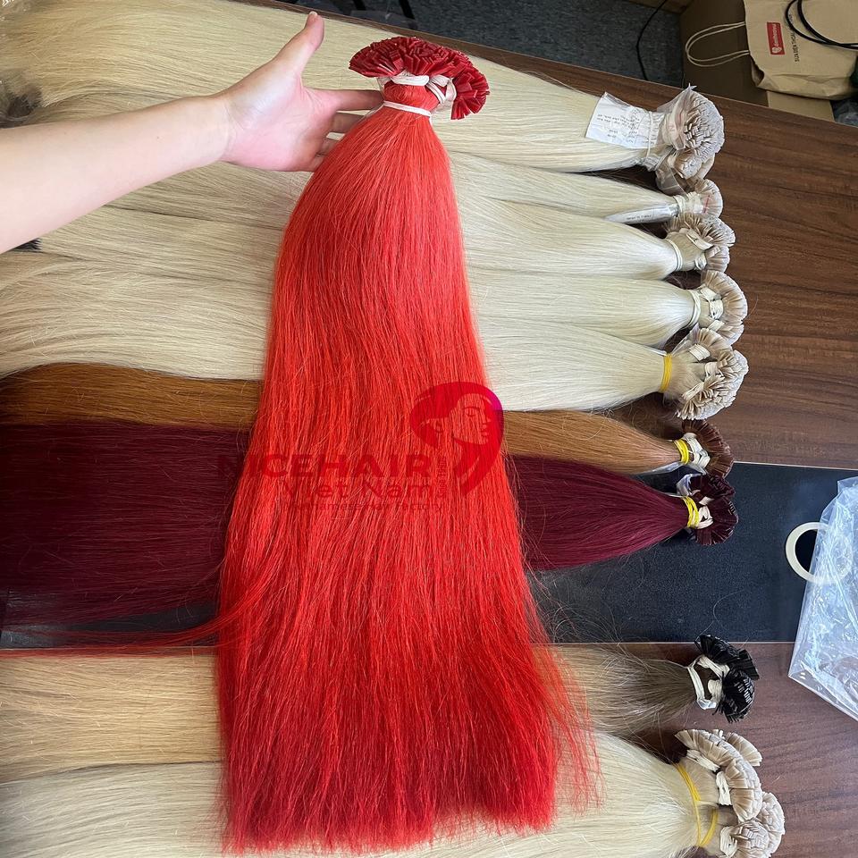 ผมต่อปลายแบนเคราตินสำหรับต่อผมสีแดงปลายแบนผลิตจากเวียดนาม