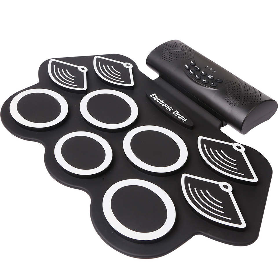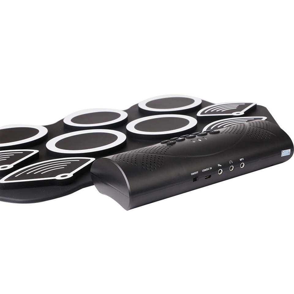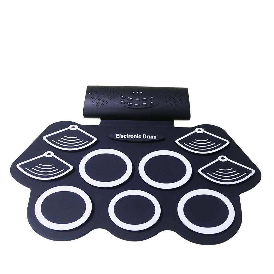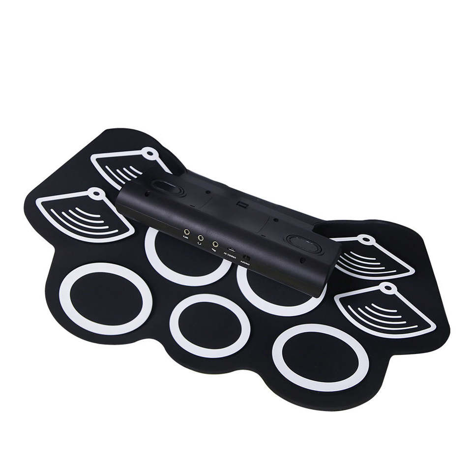 กลองไฟฟ้าม้วนได้ MIDI ซิลิโคนสีดำ เครื่องดนตรีเคาะจังหวะสำหรับเด็ก ราคาขายส่ง