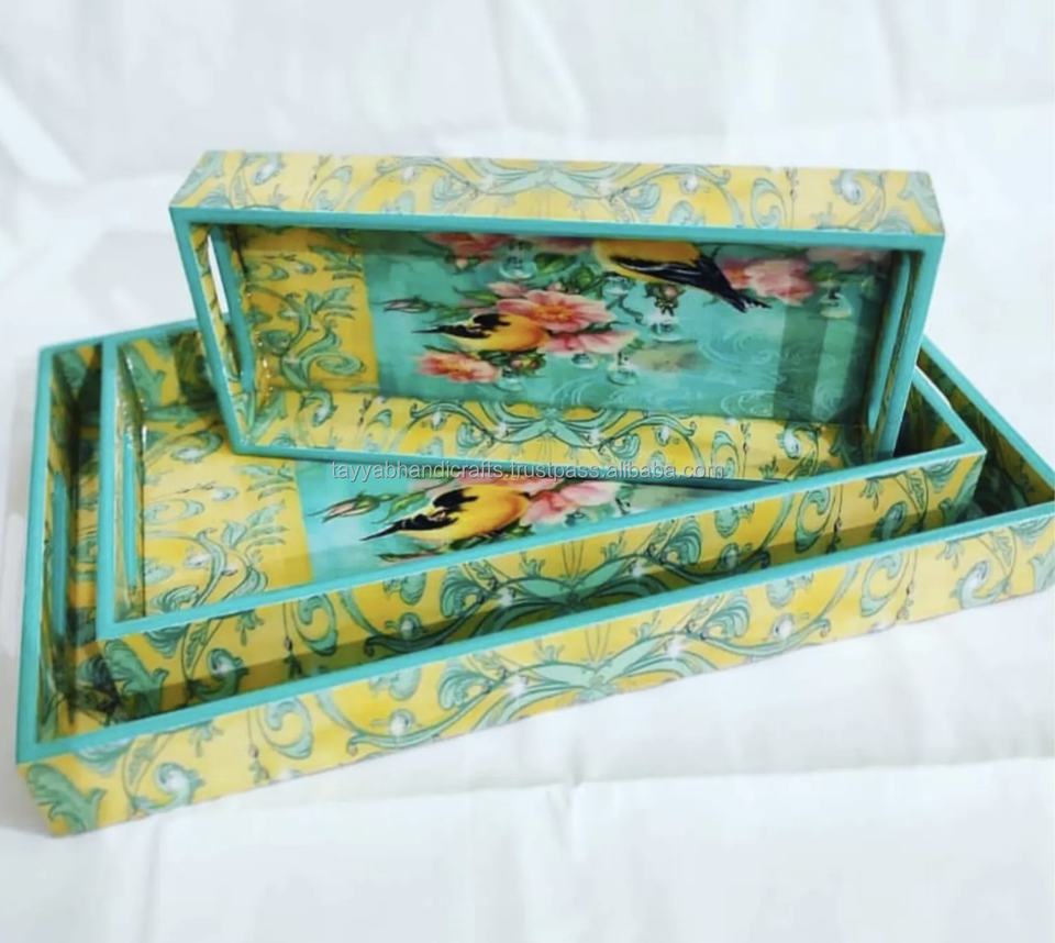 ชุดถาดไม้เอ็มดีเอฟพิมพ์ลายหลายสีสำหรับงานตกแต่งโต๊ะในบ้านโรงแรมงานหัตถกรรม tayyab