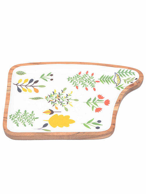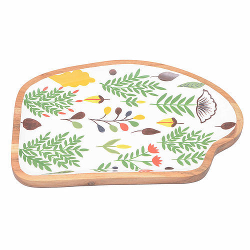 ถาดเสิร์ฟไม้มะม่วงทาสีมือใหม่ถาดไม้พร้อมดีไซน์ตกแต่ง