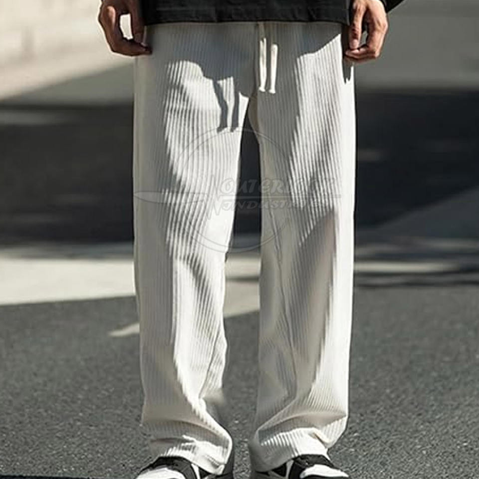 กางเกงผ้าลูกฟูกของผู้ชายระบายอากาศน้ำหนักเบาสไตล์ลำลองมีลายตรง