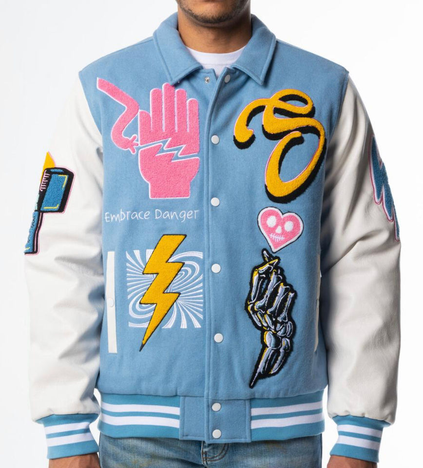 แจ็กเก็ตเบสบอลผ้าปะติดสำหรับผู้ชายแจ็กเก็ตมีลายปักโลโก้ได้ตามต้องการ