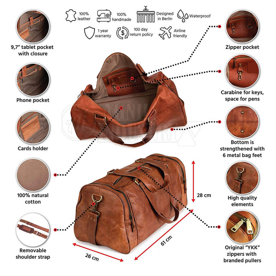 Wholesale Price Men's Genuine Leather Duffle Bag Large Capacity Duffle Bag High Quality Leather Duffle Bag