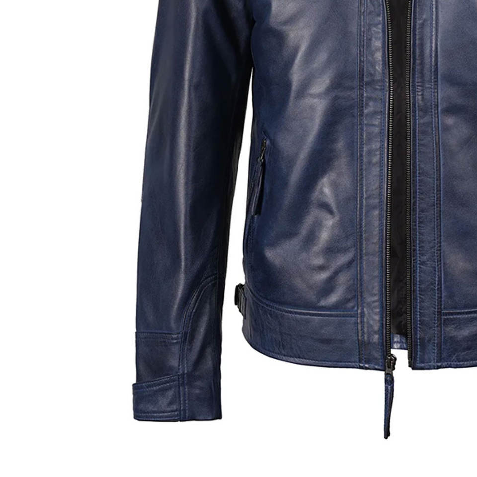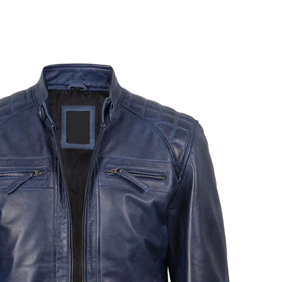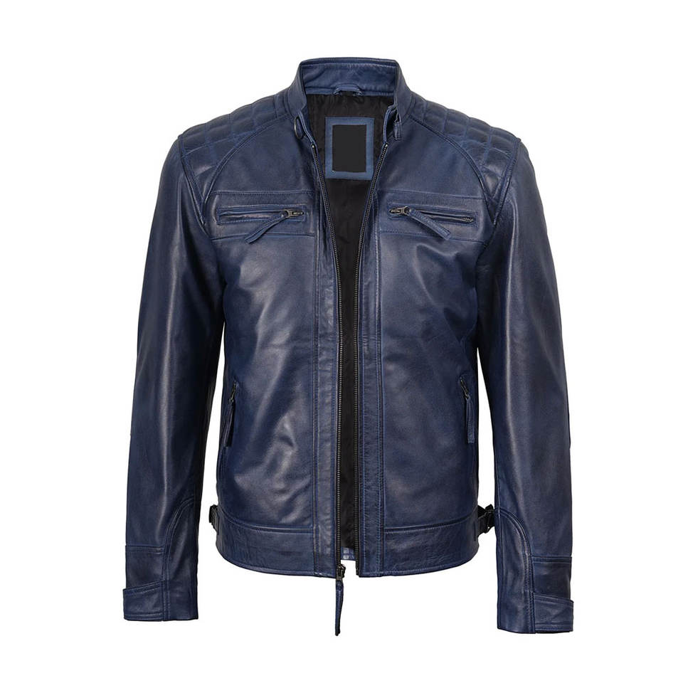 แจ็กเก็ตกันหนาวแบบมีกระดุมติดซิปรูดหนังสีฟ้าอ่อนระบายอากาศได้ดีสำหรับผู้ชาย
