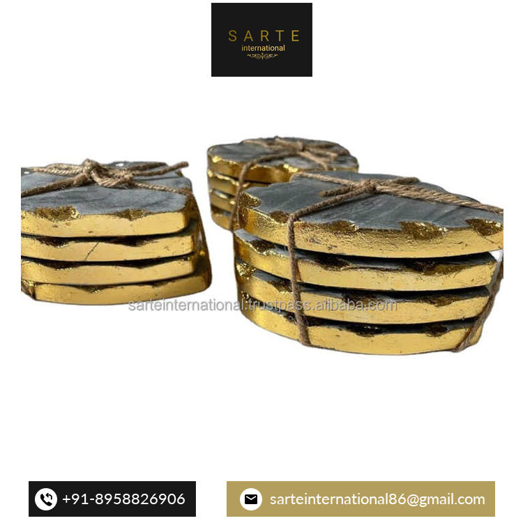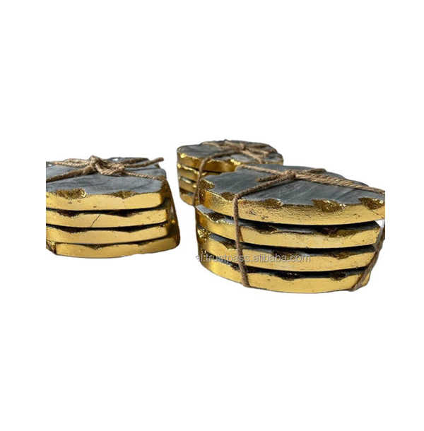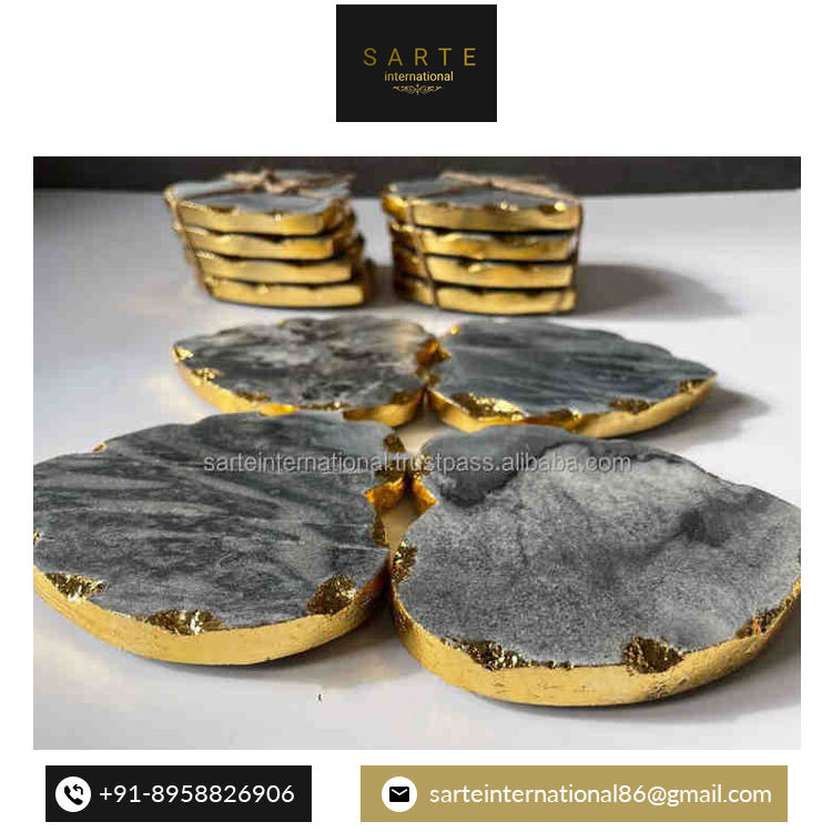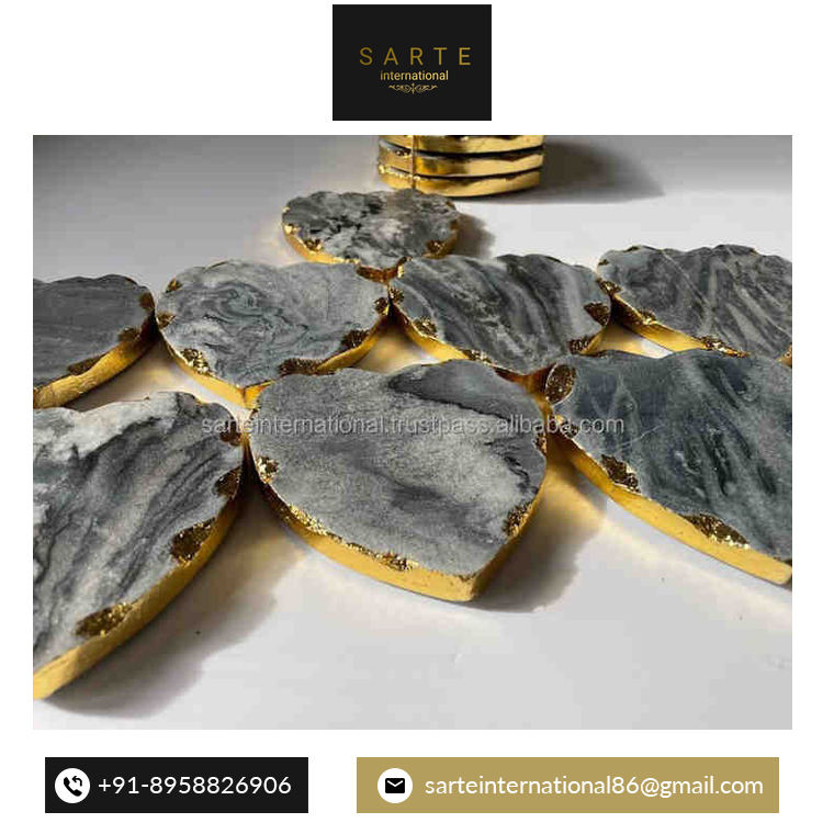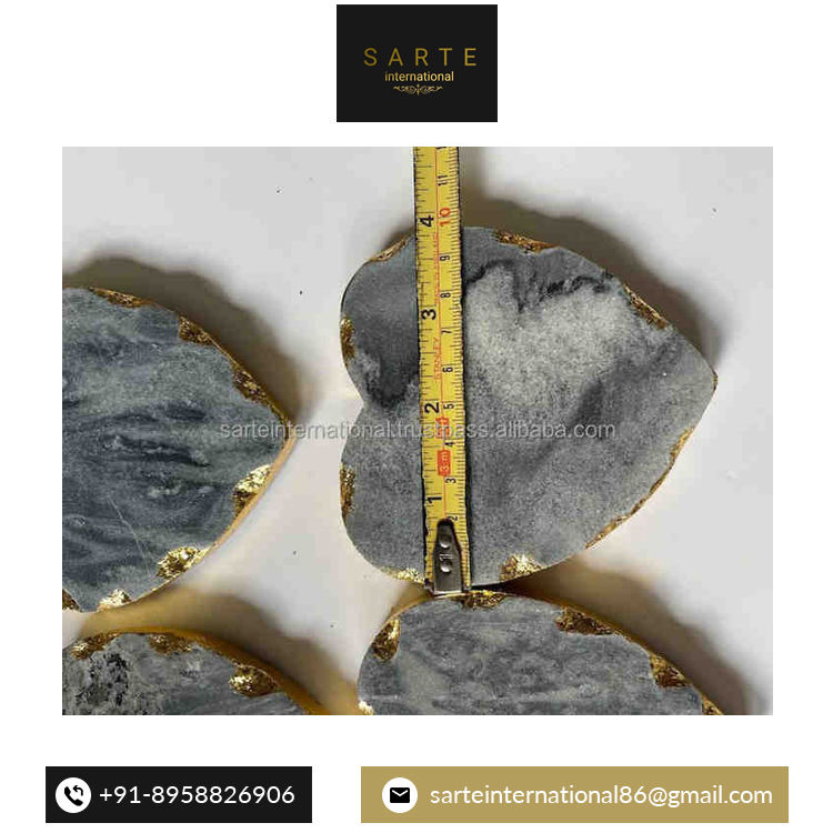 แผ่นรองแก้วลายหินอ่อนสีเทาหรูหราอุปกรณ์ตกแต่งโต๊ะในบ้านแผ่นรองด้านข้างสีทองดีไซน์ทันสมัย
