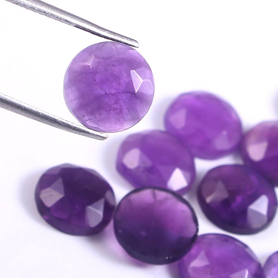 พลอยกลมเหลี่ยมเพชรพลอยแบบหลวมๆอเมทิสต์โรสแบบธรรมชาติปรับเทียบขนาด16X16มม. สำหรับทำเครื่องประดับ