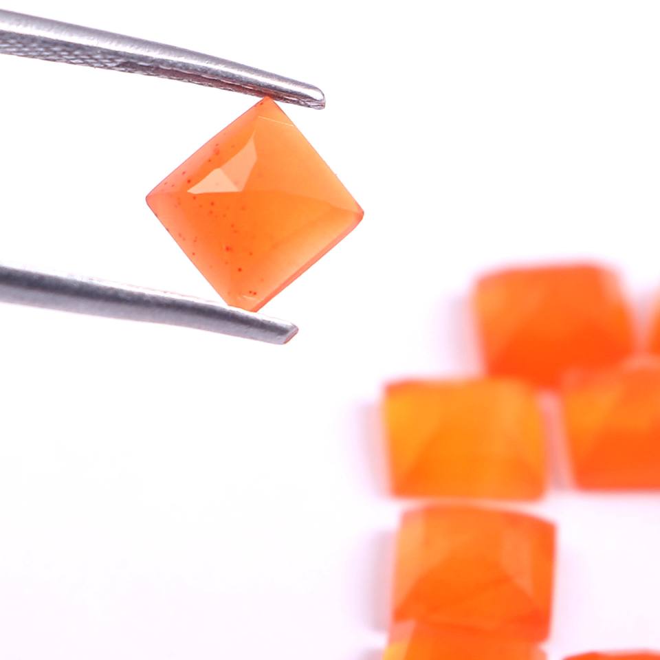 หินคาร์เนเลียนเหลี่ยมเหลี่ยมเพชรพลอยทรงหลวมขนาด6X6มม.,หินเจียร์จากธรรมชาติ