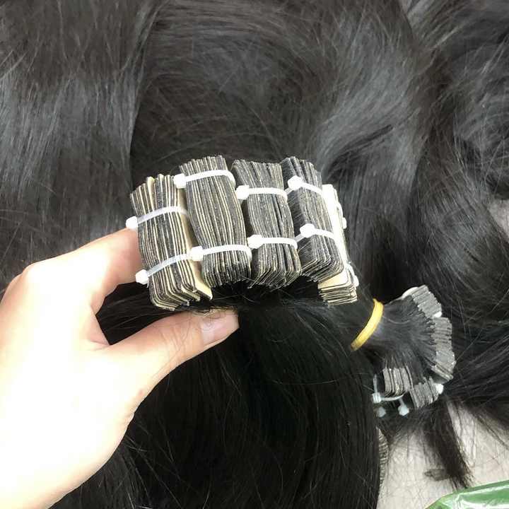 ผมมนุษย์แบบเทปยุโรปตรงและนุ่มเหมือนเส้นผมมนุษย์สีธรรมชาติ100% ผมต่อจากเวียดนาม