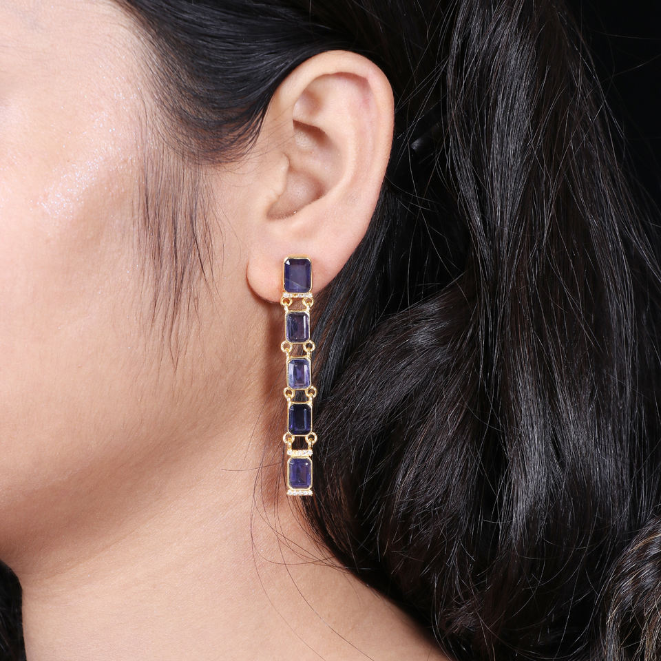 ต่างหูไอโอไลต์ธรรมชาติสำหรับผู้หญิงต่างหูอัญมณี925ชุบทองเงินสเตอร์ลิง