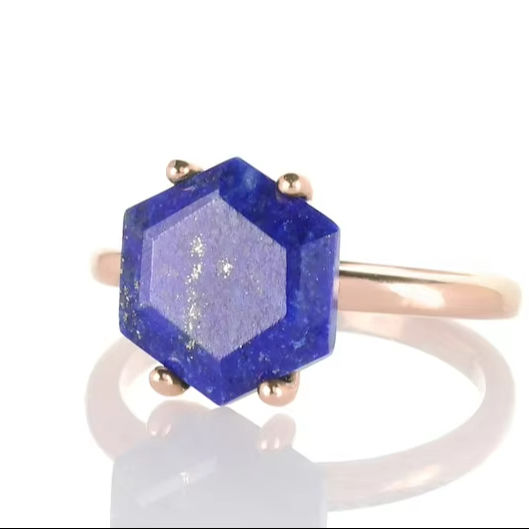 ขายส่งราคาธรรมชาติ Lapis Lazuli หินอัญมณีเจียระไนเหลี่ยมเพชรพลอย925เงินสเตอร์ลิงสลักแหวนหินวางซ้อนกันได้เครื่องประดับที่ดี
