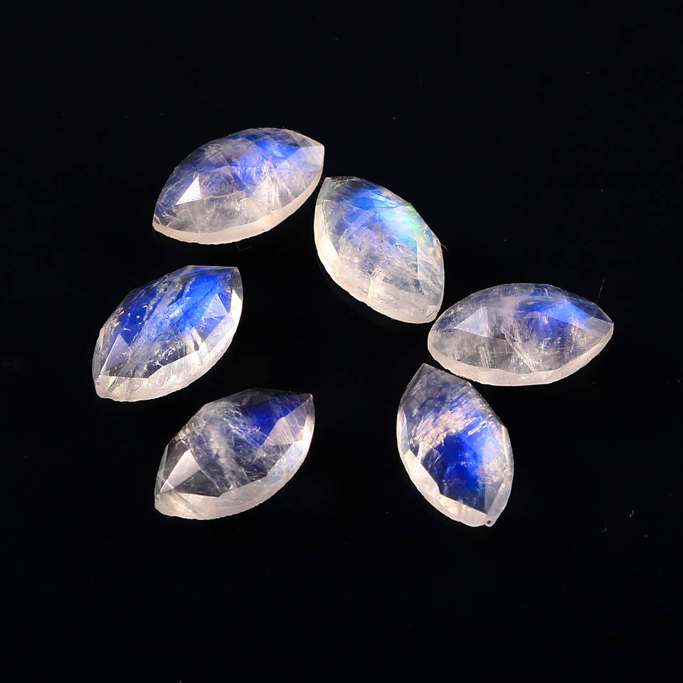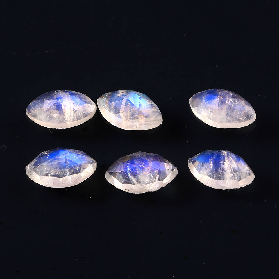 มูนสโตนธรรมชาติมูนสโตน Rainbow Rose Cut พลอยมาร์คีส์เจียระไนแบบหลวมขนาด8X6มม. สำหรับทำเครื่องประดับ