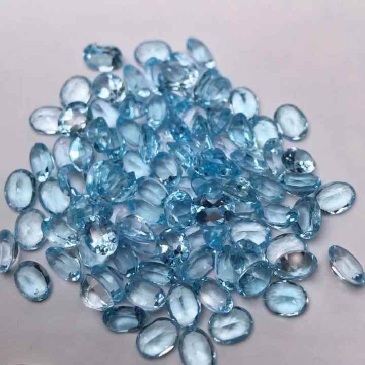 พลอยบุษราคัมทรงวงรีสีฟ้าตามธรรมชาติ6*8-10*12มม.