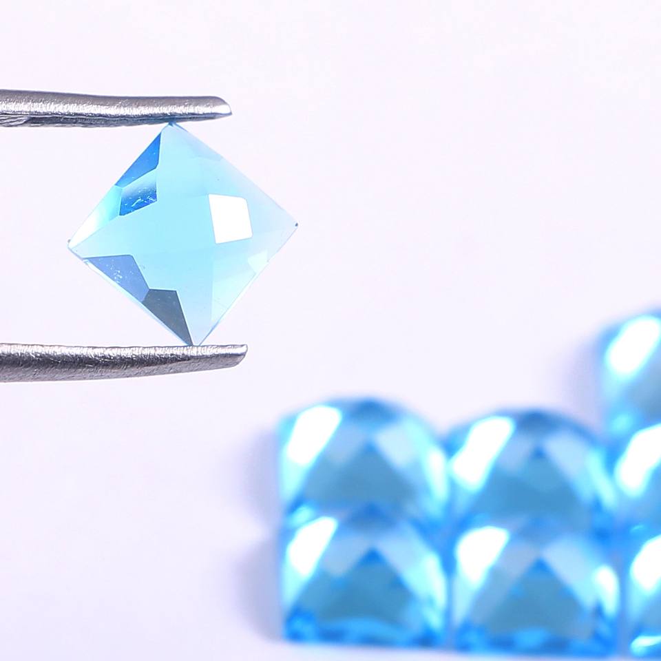พลอยสี่เหลี่ยมเหลี่ยมเหลี่ยมเพชรพลอยปรับเทียบขนาด8X8มม. สำหรับการทำเครื่องประดับโทแพซสีน้ำเงินสวิสธรรมชาติราคาส่ง