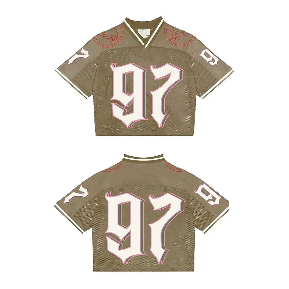 เสื้อยืดสำหรับผู้ชายเสื้อเจอร์ซีย์เล่นกีฬาอเมริกันฟุตบอลแห้งเร็วมาใหม่ฤดูร้อน