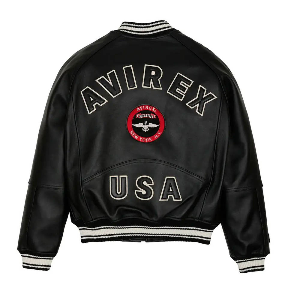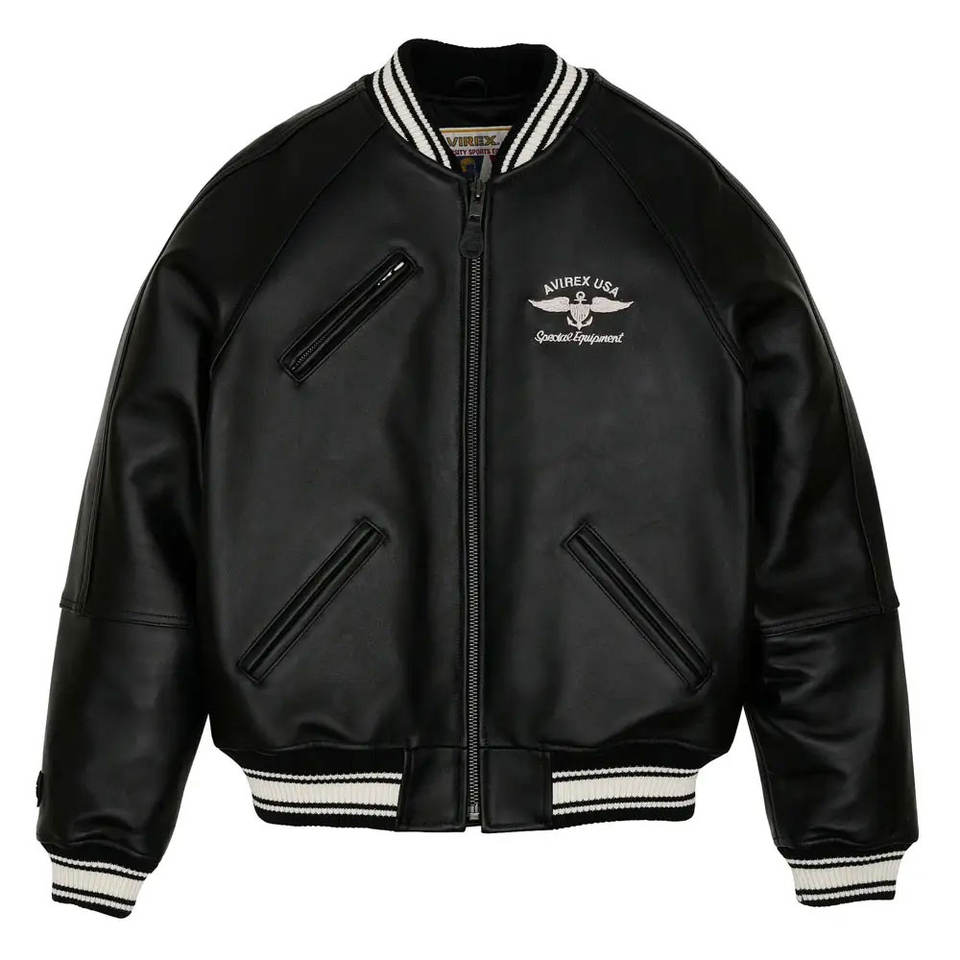 แจ็กเก็ตหนัง Avirex ปักลายสำหรับผู้ชายเสื้อสตรีทแวร์ออกแบบได้ตามต้องการ