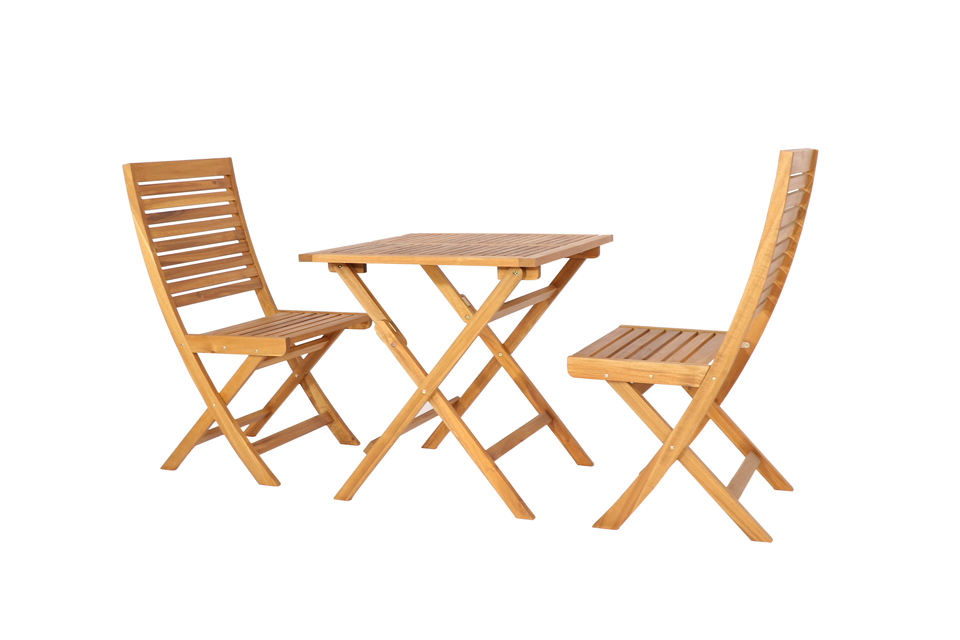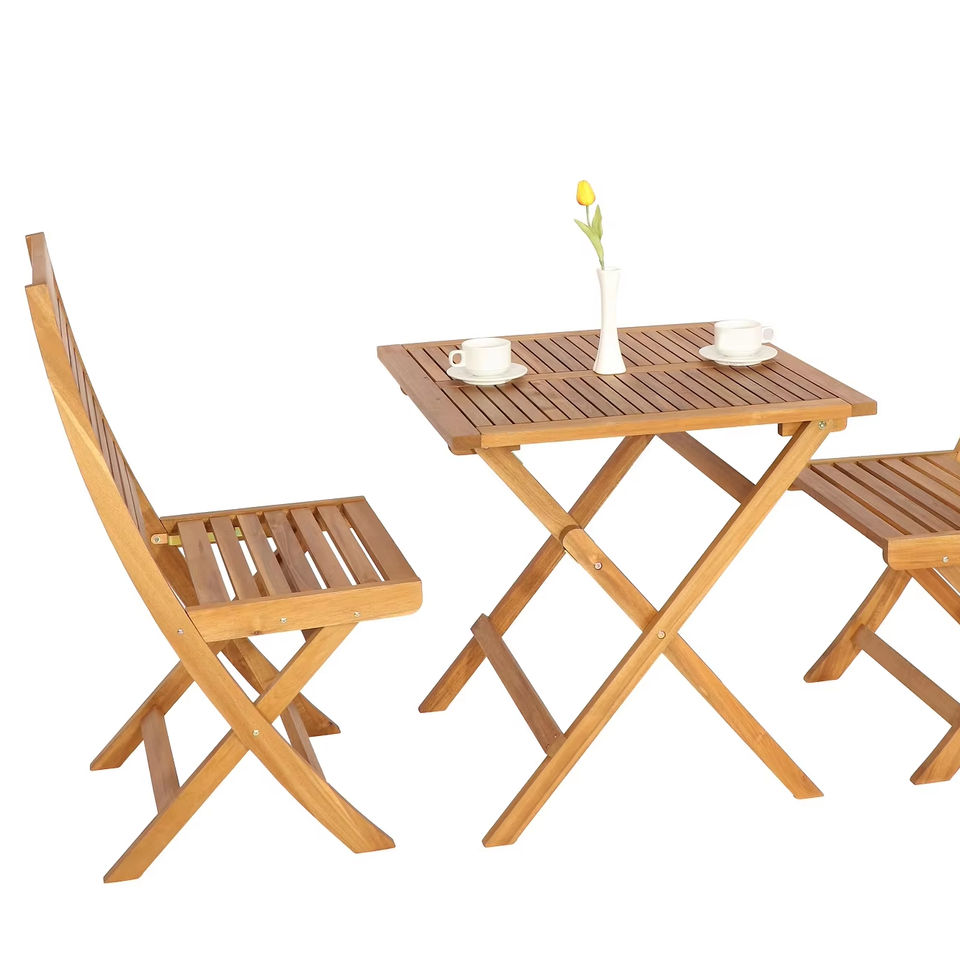 ชุดเฟอร์นิเจอร์กลางแจ้งพับได้ชุดบิสโทรระเบียงโต๊ะและเก้าอี้ไม้อะคาเซียจากเวียดนาม