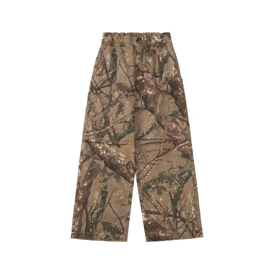 กางเกงคาร์โก้ผู้ชายลายพรางทหารทรงหลวมเอวกลางผ้าแคนวาสขนาดใหญ่สั่งทำได้ราคาส่ง