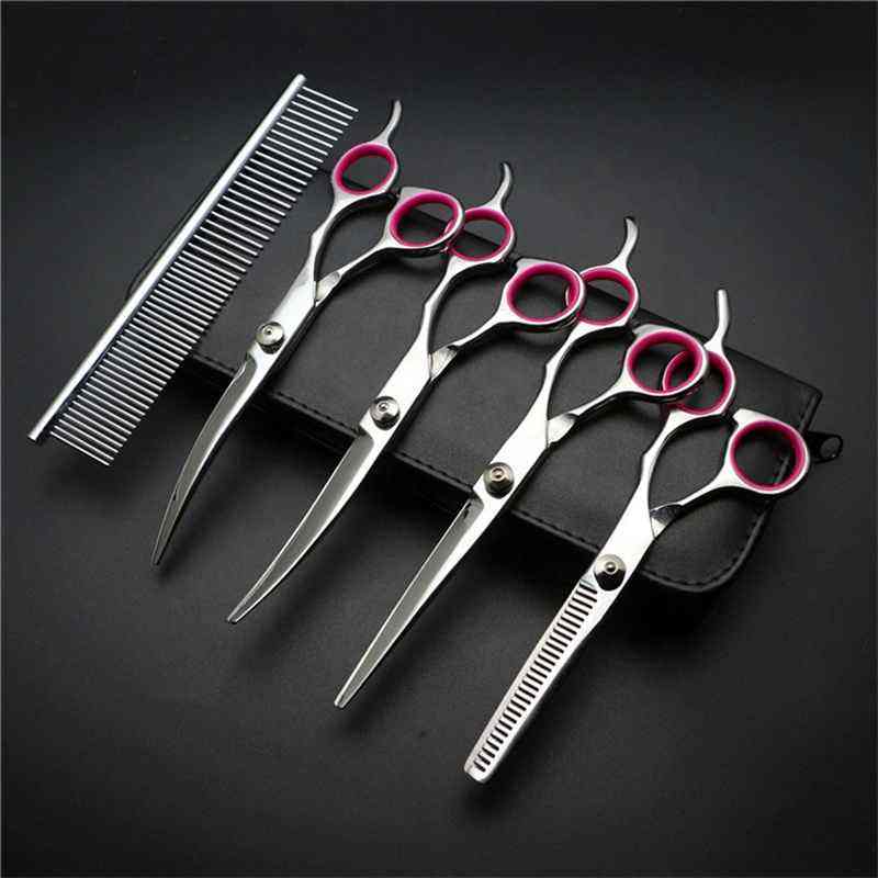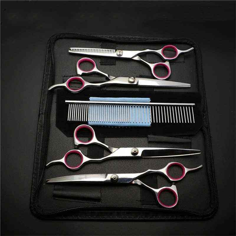 กรรไกรตัดขนสัตว์เลี้ยงกรรไกรตัดขนสัตว์เลี้ยงแบบสแตนเลสพร้อมหวีชุดอุปกรณ์ทำความสะอาดขนสัตว์เลี้ยง