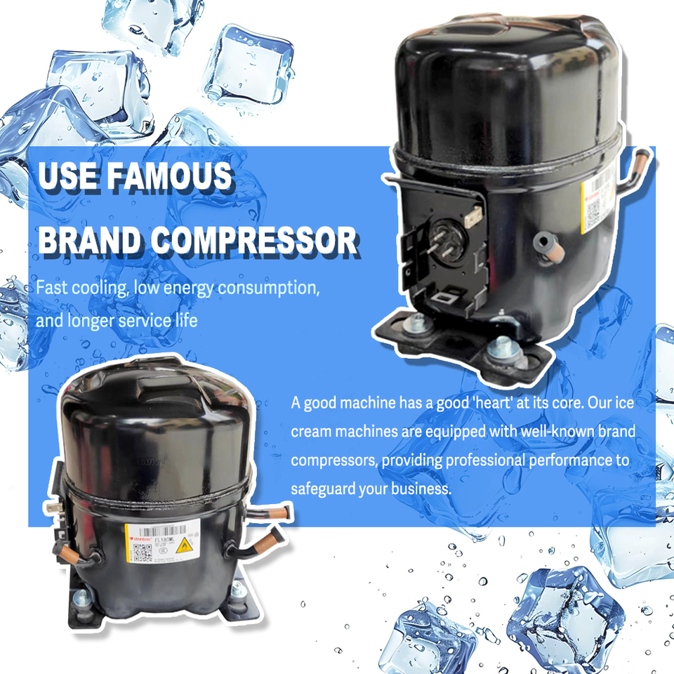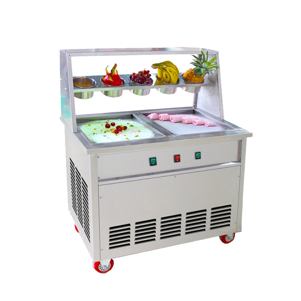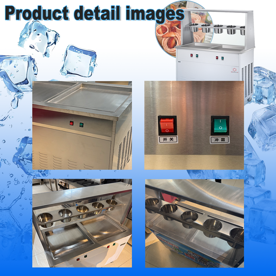 เครื่องทำไอศกรีมม้วนแบบมืออาชีพ ผลิตภาพสูง ราคาขายส่ง พร้อมถัง 5 ใบ หม้อคู่ คอมเพรสเซอร์คู่