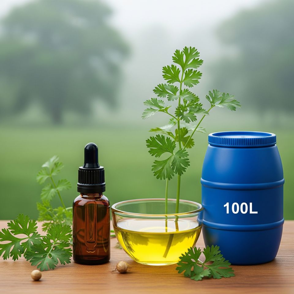 น้ำมันหอมระเหยใบผักชีบริสุทธิ์เกรดอาหาร ราคาขายส่ง ปราศจากสารเคมี ช่วยลดเลือนริ้วรอย ฟื้นฟูผิว บำรุงผิวชุ่มชื้น ผสมทีทรี