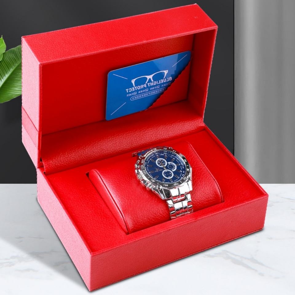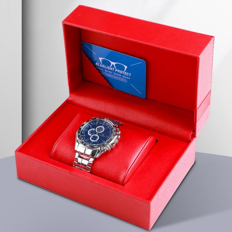 กล่องบรรจุภัณฑ์นาฬิกาหนัง PU สีแดงหรูหรา ป้องกันฝุ่น รุ่น QZ Square สำหรับกลไกควอตซ์ ราคาขายส่ง ผลิตในจีน/ฝูเจี้ยน