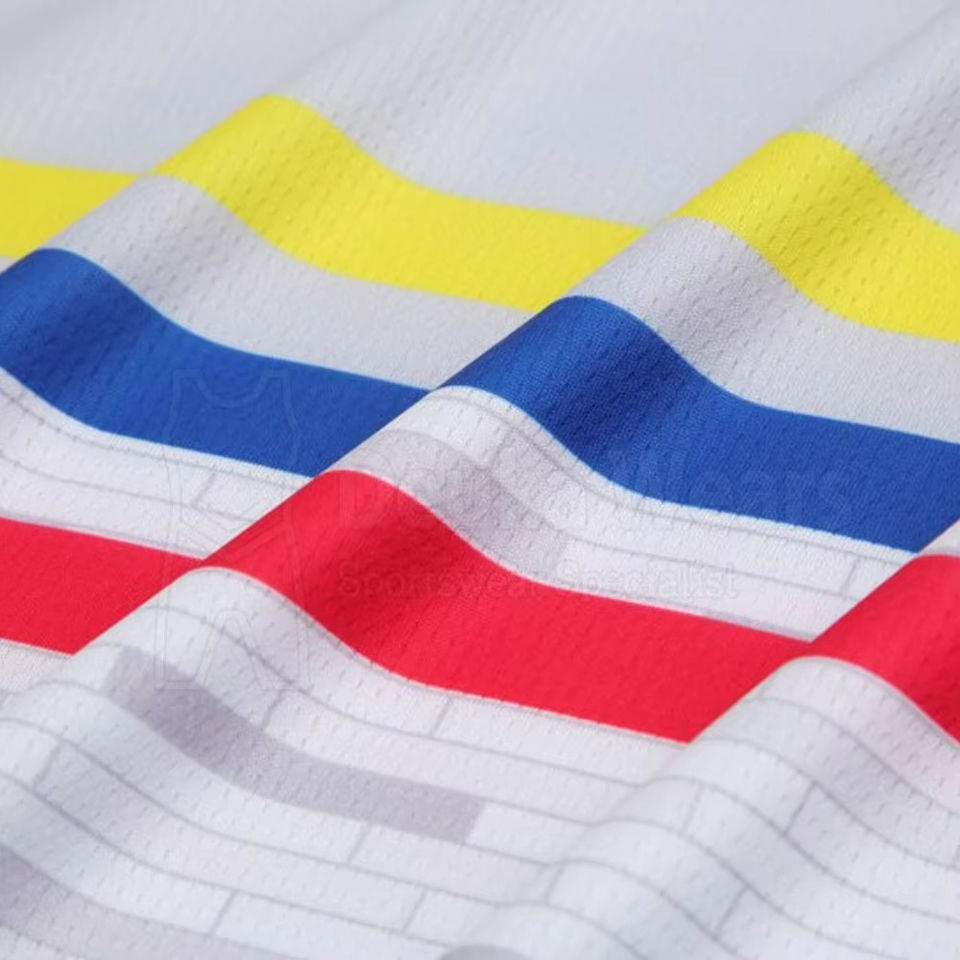ตำแหน่งโลโก้:ด้านหน้า, ด้านหลัง, แขนเสื้อด้านซ้าย, แขนเสื้อด้านขวา, ขอบล่าง, หลังคอ