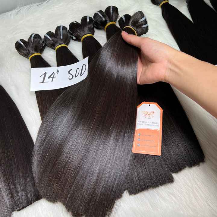 ราคาขายส่งผมเวียดนามดิบคุณภาพระดับพรีเมียมกระดูกตรงต่อผมยาวความยาวหลายมาตรฐาน