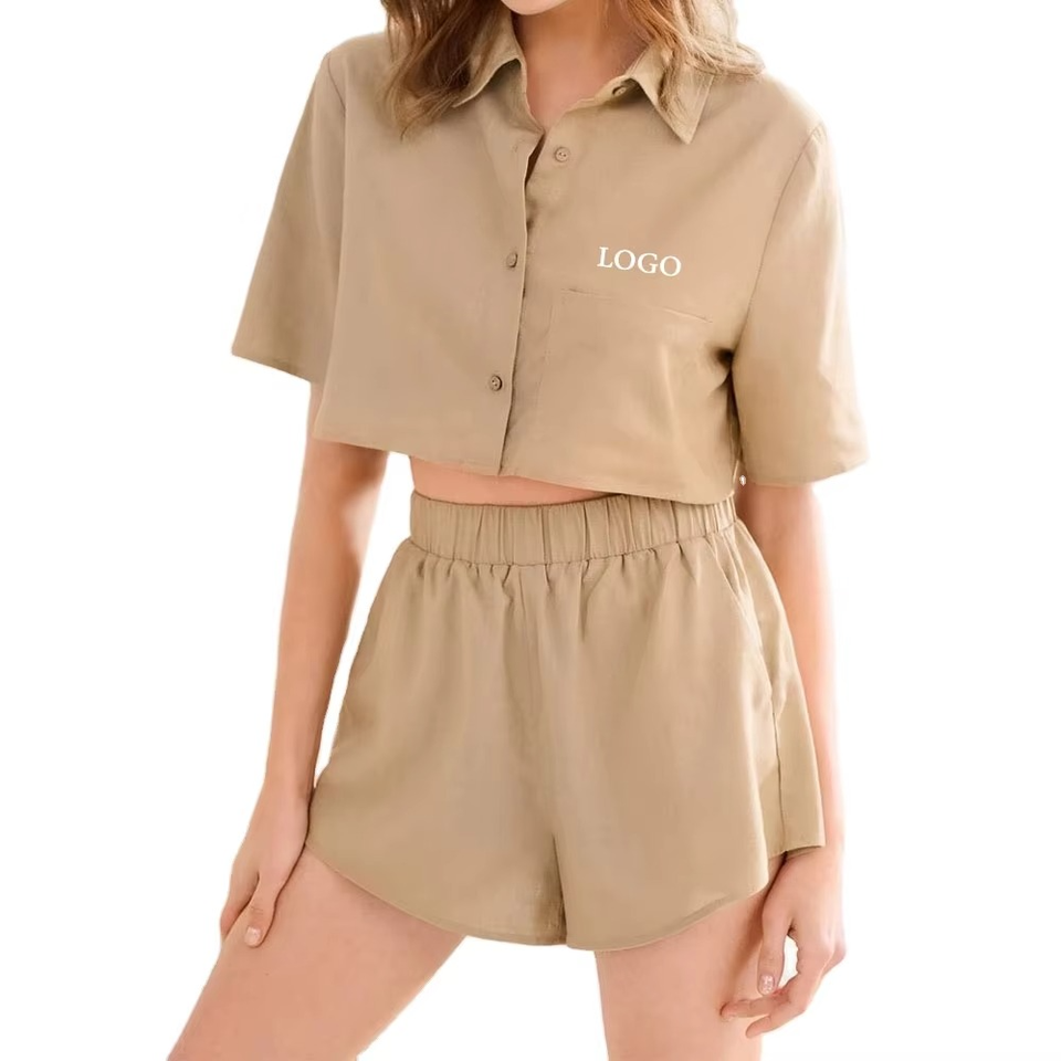 ชุดครอปสองชิ้นทรงปกติชุดสตรีดีไซน์ใหม่เสื้อและสั้นของผู้หญิงเสื้อครอปโลโก้ออกแบบได้ตามต้องการ