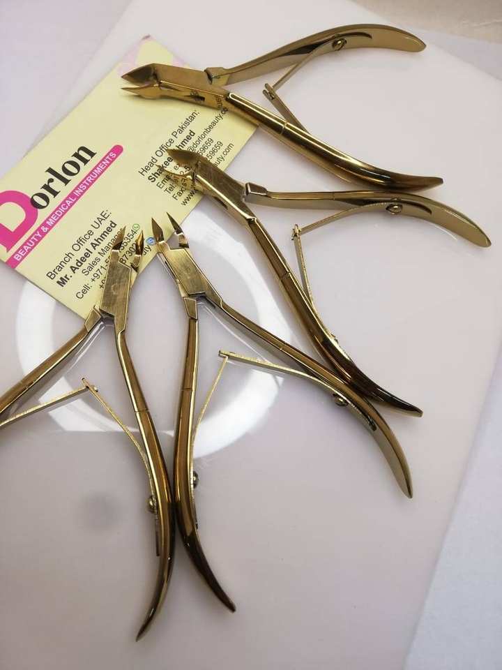 คีมตัดเล็บพลาสม่าสีโรสโกลด์อุปกรณ์ดูแลเล็บทำจากสเตนเลสสตีลปลายแหลม