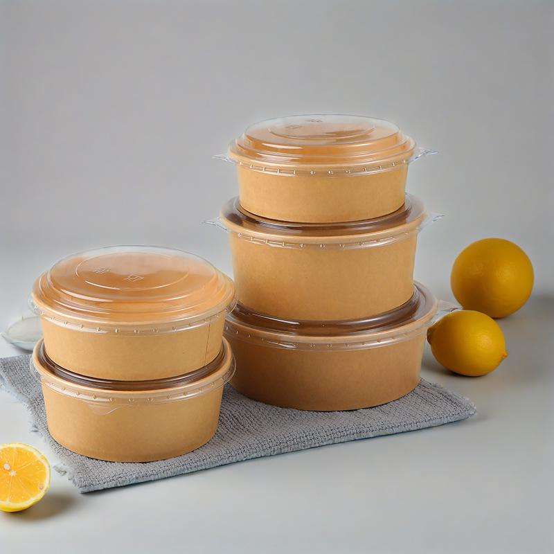 ราคาขายส่ง ชามกระดาษคราฟท์ทรงกลมสีน้ำตาล ย่อยสลายได้ เป็นมิตรกับสิ่งแวดล้อม สำหรับใส่สลัดแบบนำกลับบ้าน