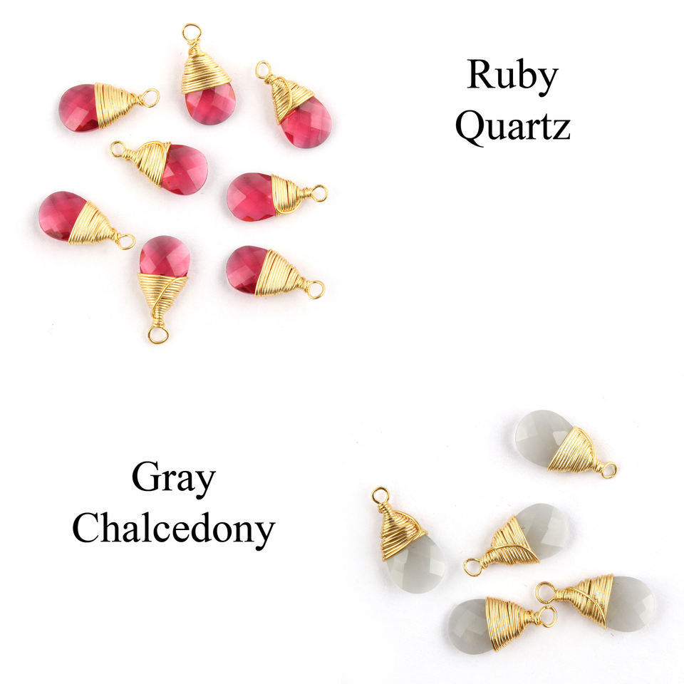 รูบี้ควอตซ์ลวดห่อเชื่อมต่อทองเหลืองชุบทองเดี่ยวห่วง Briolette เชื่อมต่อสำหรับการทำเครื่องประดับ