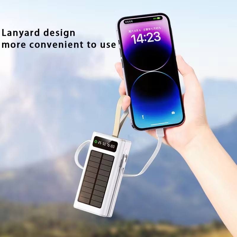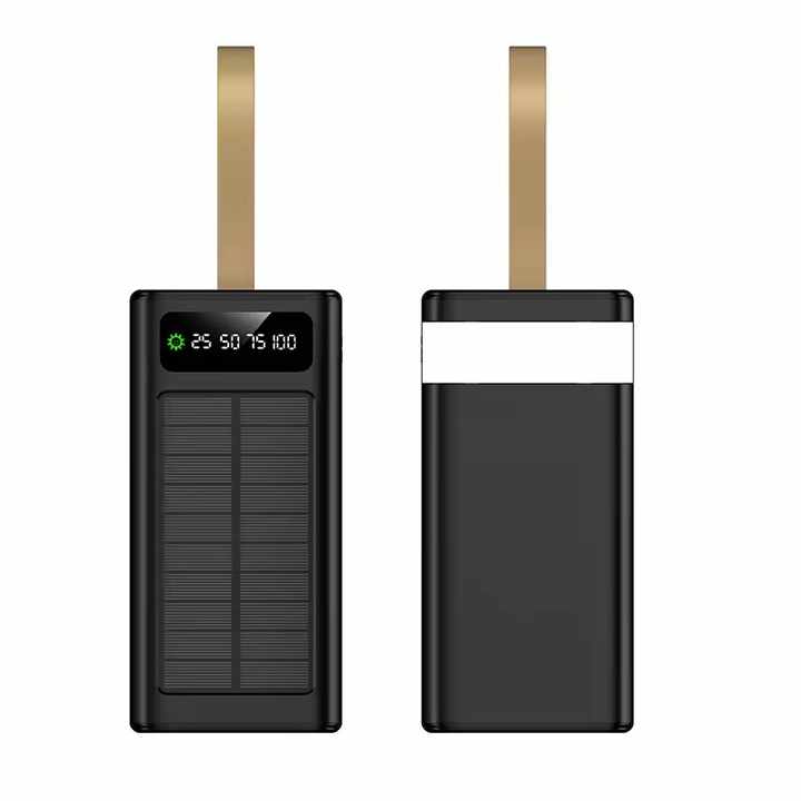 Wholesale Price Solar Power Bank 30000/40000/50000/60000mAh Big Capacity Built-in Cables External Battery LED Light Power Bank