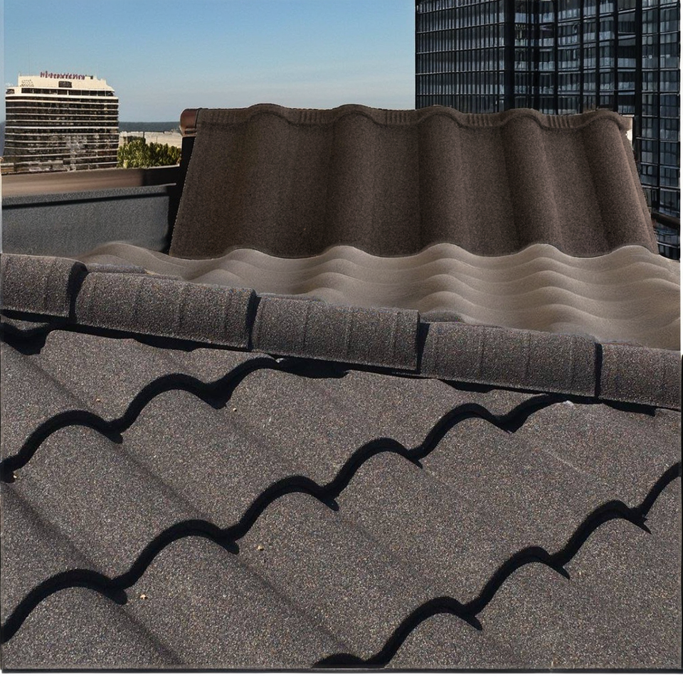 กระเบื้องหลังคาพลังงานแสงอาทิตย์กระเบื้องหลังคาโลหะเคลือบหินสีแดงกระเบื้องคอนกรีตดินเผาสำหรับหลังคา
