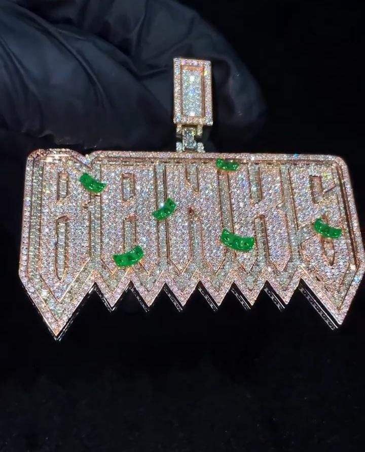 ราคาขายส่ง สร้อยคอเงินแท้ 925 ประดับเพชรโมอิสซาไนต์ VVS รูปทรง Emerald Cut พร้อมจี้ตัวอักษรแบบ Lab Letter สร้อยคิวบาลิงค์