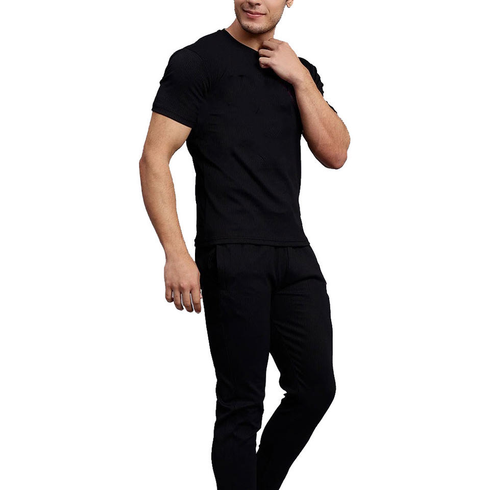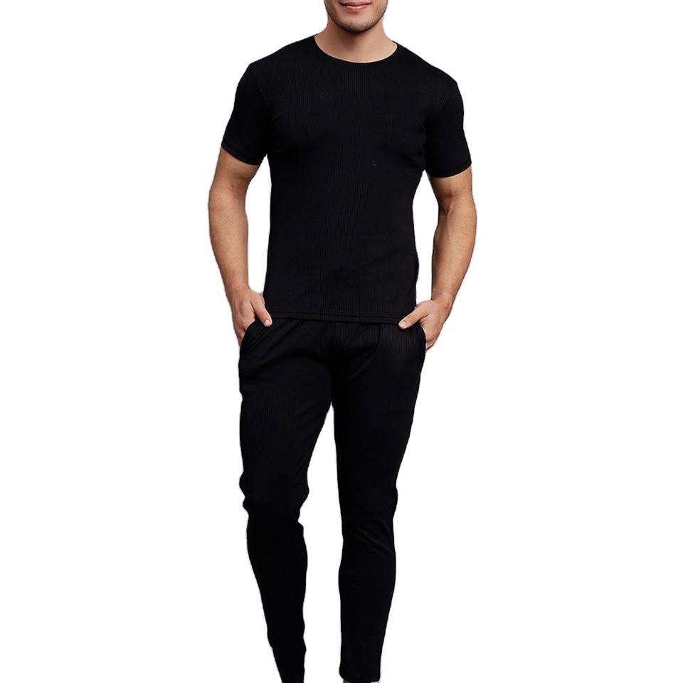ราคาขายส่ง คอลเลคชั่นฤดูร้อน เสื้อยืดสีน้ำเงินกรมท่าและกางเกงขายาว ชุดเสื้อยืดฤดูร้อนผู้ชายพร้อมชุดแทรคสูท ชุด 2 ชิ้นสำหรับผู้ชาย