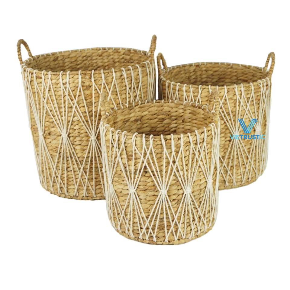ตะกร้าปอกระเจาสำหรับใส่เสื้อผ้าที่บ้านตะกร้าใส่หญ้าทะเลน้ำผักตบชวา