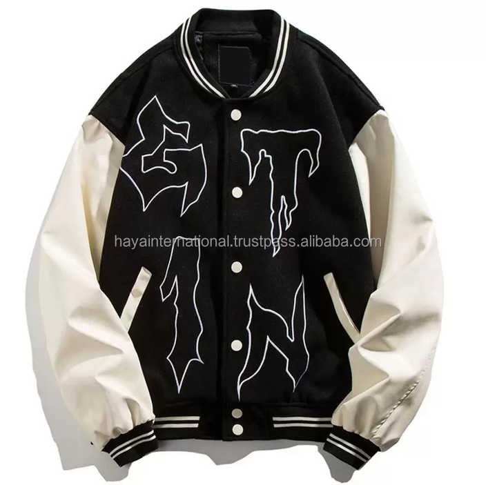 แจ็คเก็ตไซส์พิเศษสำหรับทุกเพศเสื้อแจ็กเก็ตสีดำ HIVJ203ปักลายปกตั้งสำหรับฤดูหนาว