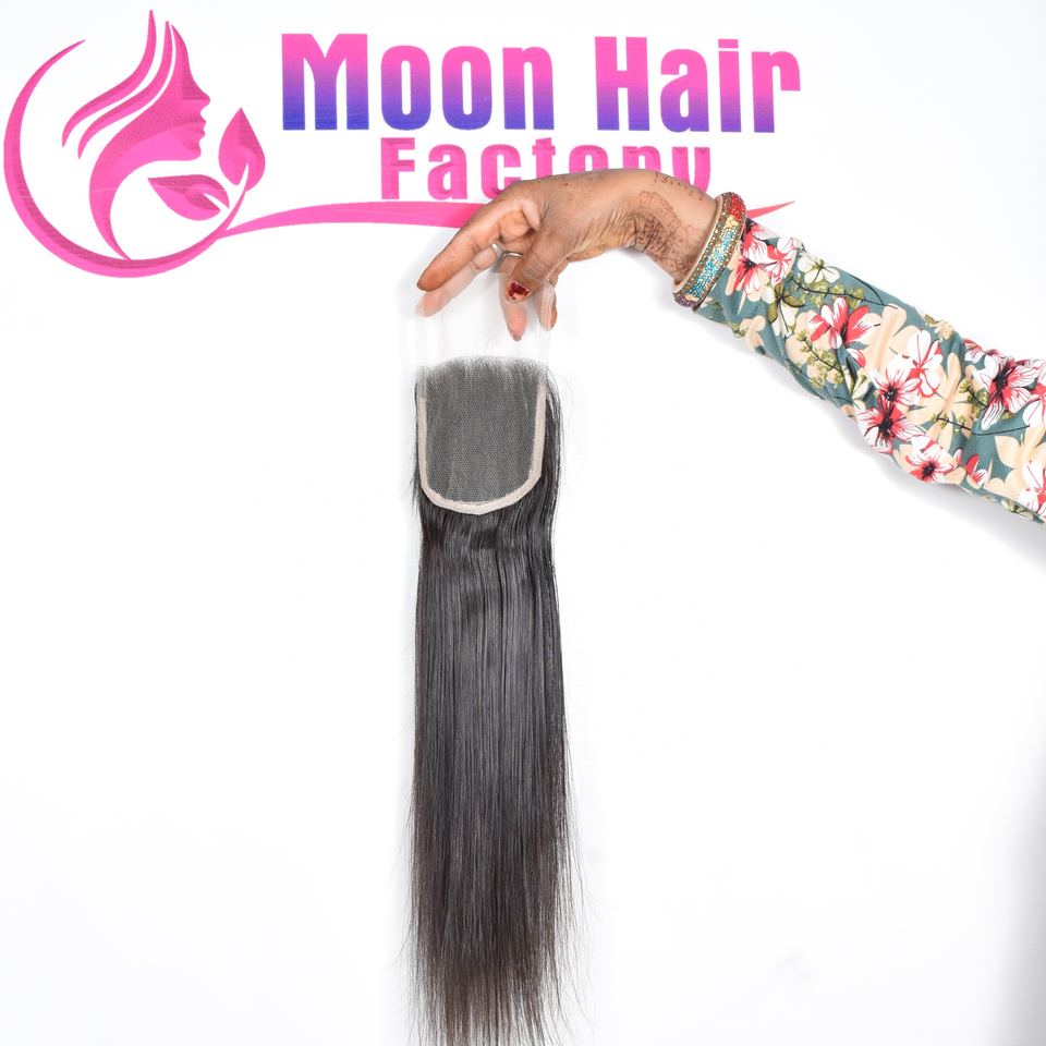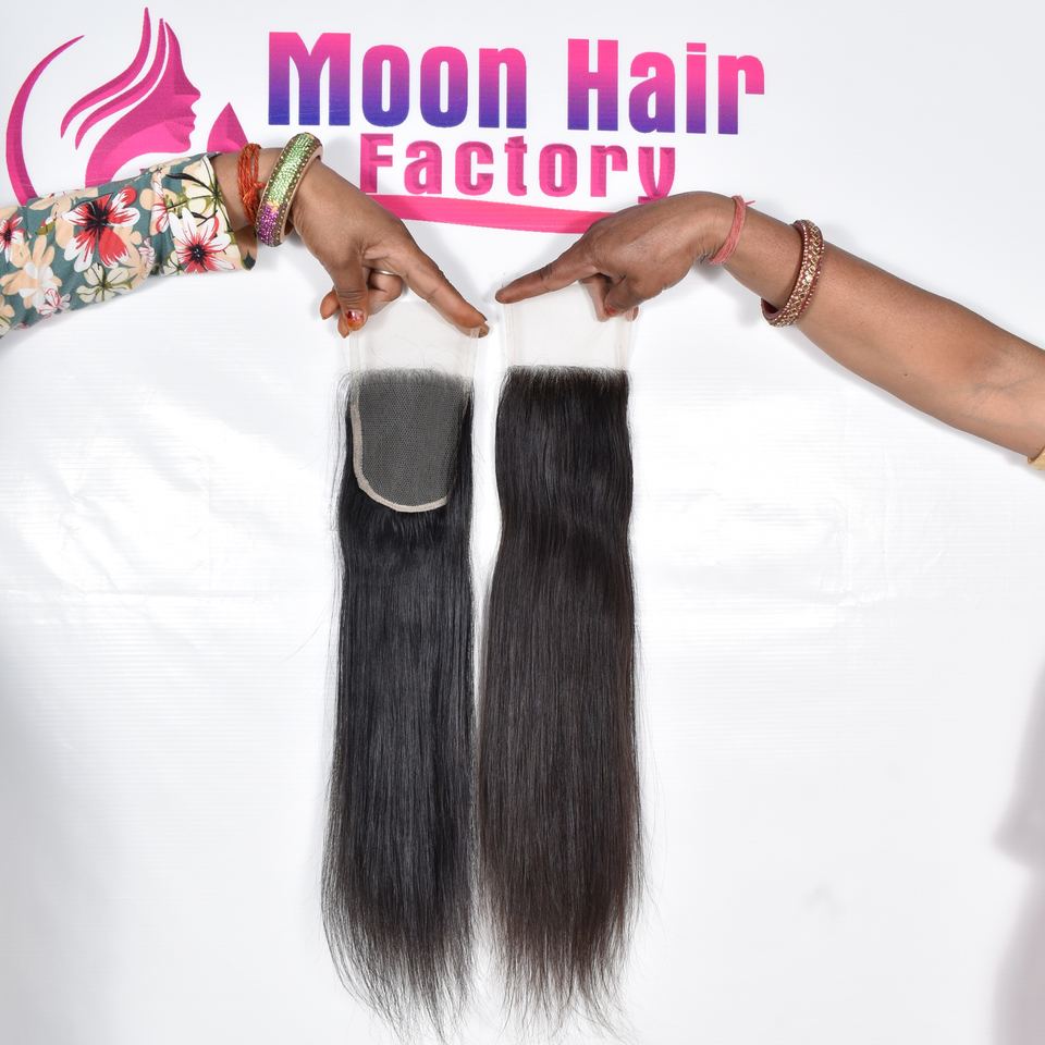 Wholesale Price Unprocessed natural color Black Indian Raw Human Hair Closure Straight Bundles Cuticle Aligned Remy Extensions