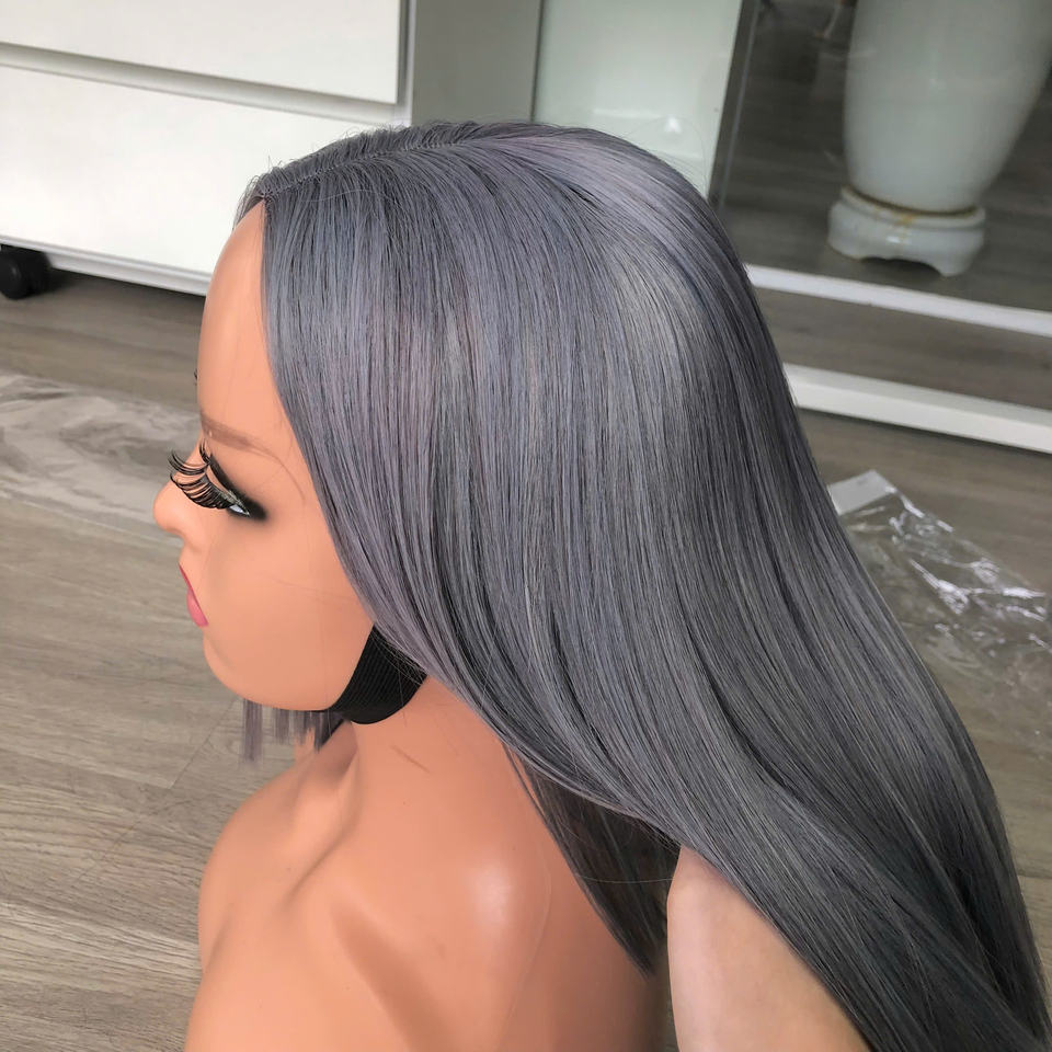 วิกผมเวียดนามทรงตรงยาวปานกลางเรียงตามหนังศีรษะเกรย์