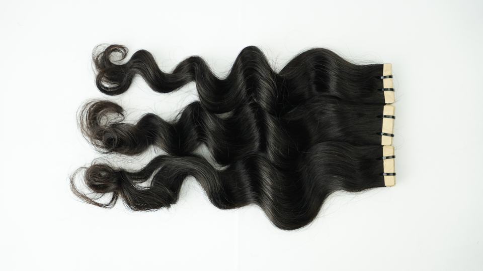 ผมมนุษย์หยักศกแบบเทปต่อทำให้ผมตรงและย้อม
