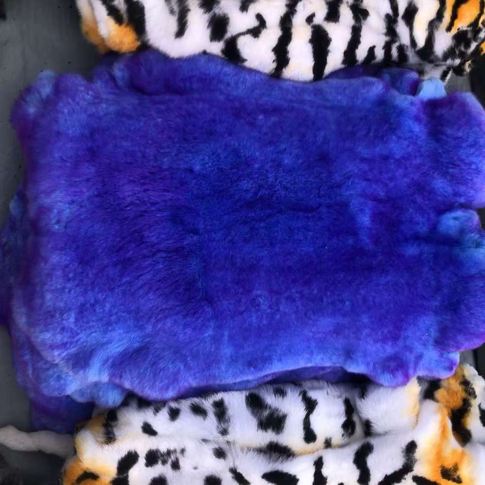 หนังกระต่ายชินชิล่าเร็กซ์สีขาวขนฟูสีแทนมีลวดลายดิบหรูหรา