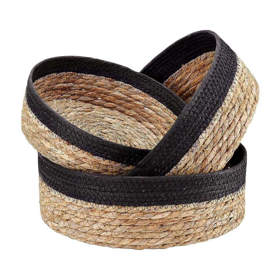 ราคาขายส่งตะกร้าเก็บหวายสําหรับชุดตะกร้าหญ้าทะเลทรงกลมผลไม้สําหรับจัดระเบียบตะกร้าเสิร์ฟขนมปัง